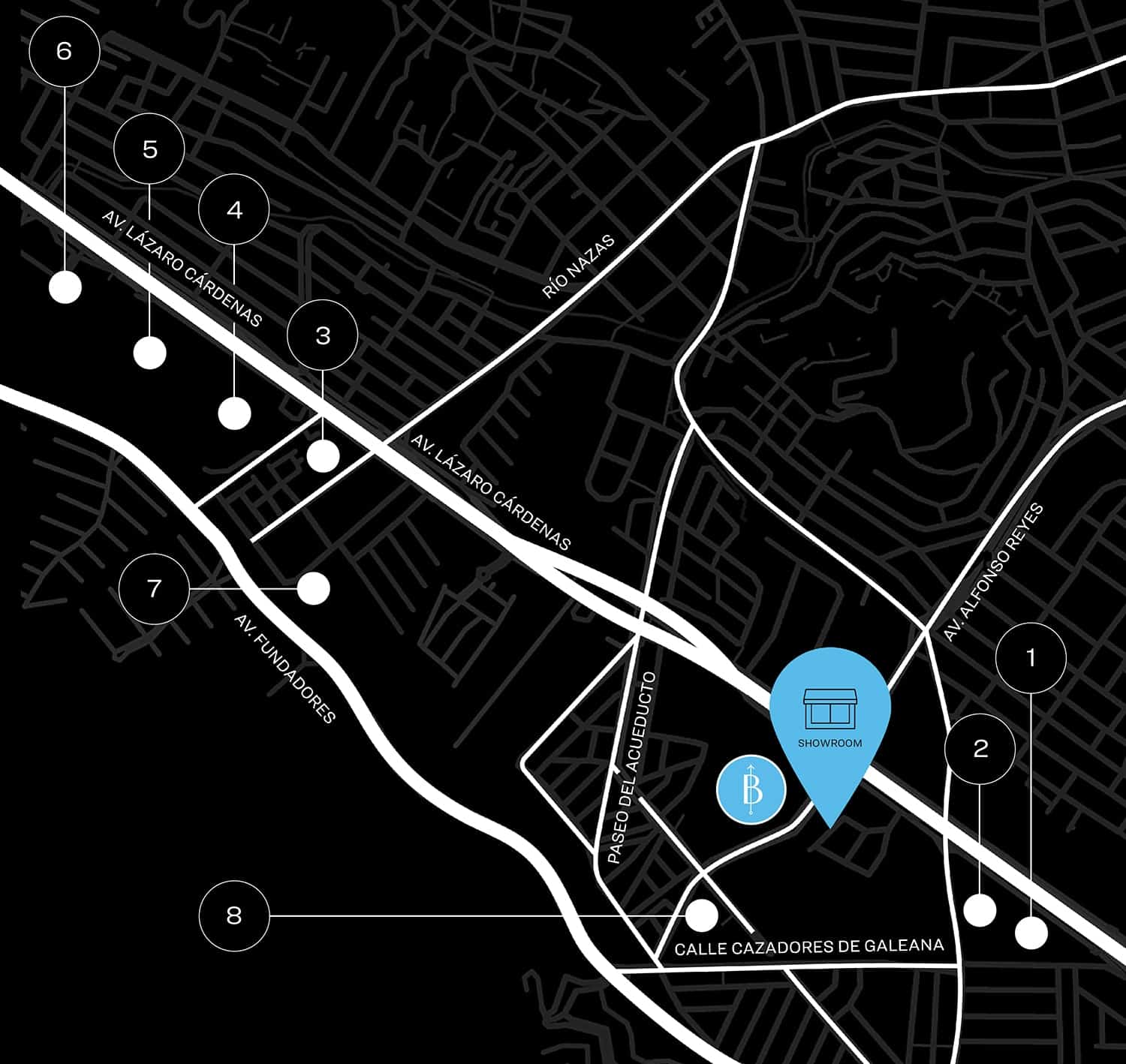 Ubicado en el sector Valle Oriente, dentro de uno de los corredores con mayor relevancia gastronómica, de entretenimiento, negocios y vivienda, en Boreal estarás conectado con la zona de mayor crecimiento y plusvalía de la ciudad. 1. Soriana Hiper 2. Home Depot 3. Plaza Fundadores 4. Centro Comercial Valle Oriente 5. Walmart 6. Costco 7. Plaza VO 8. TecMilenio Campus Las Torres